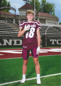 Cade is running back with big-play shiftiness and explosiveness. Possesses great body structure and a compact, solidly-built frame that can absorb punishment — and dish it out. Has a good burst with top-end speed, but he can still take it the distance or break off a big gainer on any carry. Runs with patience until he finds the downhill seam, then he turns it on. Flashes great pop and explosion through the hole with quick feet and sudden change-of-direction and jump-cut in tight spaces to avoid tacklers. Rare combination at high school level: lateral agility and quickness to bounce out of a cloudy hole with the burst to get the corner when needed. Very difficult to line up for a direct shot through traffic and when defenders do, he is extremely difficult to take down. His legs and body never stop on contact. Low center of gravity, impressive power-base and balance allows him to absorb a hit and keep his body and legs driving forward. A hard runner who will initiate contact in a bruising, aggressive style that will wear down a defense and make smaller back-seven defenders think twice about coming up to tackle him. Consistently falls forward with his great momentum and finishes runs. Has a big-play element to his game as well. Gets through tight in-line seams quickly allowing him to split closing defenders and burst frequent runs into big, open field gainers. Reaches top speed quickly and is a sharp speed cutter who gears down little avoiding tacklers while keeping downhill momentum and following the shortest distance to the goal line. Flashes good top-end speed — has a deceptively longer stride for a compact frame – he will have that elite second gear that colleges are looking for. Overall, Cade has good receiving skills, is a solid blocker and strong downhill runner who combines great power and footwork for optimum production. A every-down back who should have a prolific college career if he Keep working hard featured as the back with good speed.